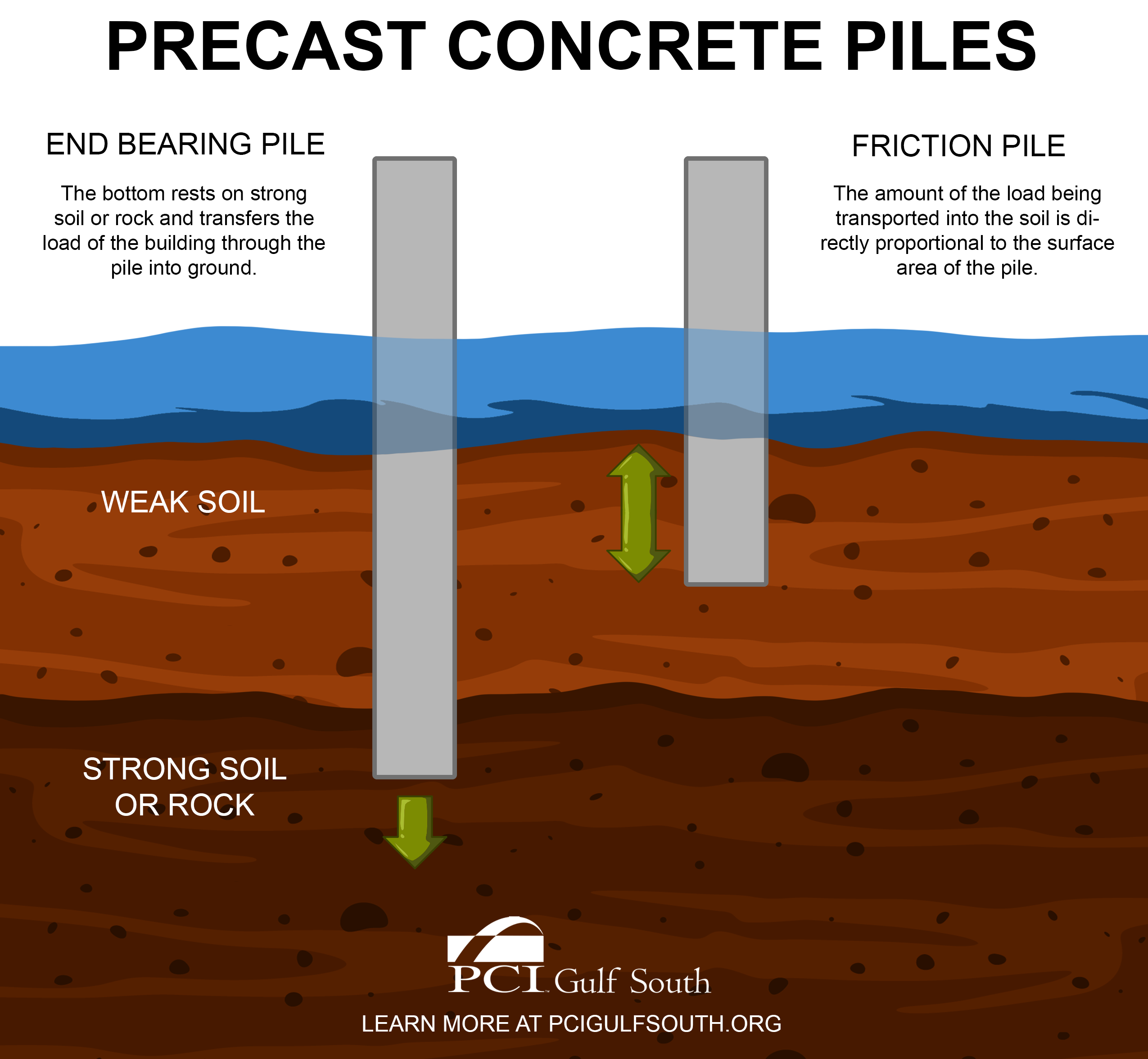 Piles are prefabricated, high strength, prestressed concrete columns that act as a support or foundation for structures and bridges.