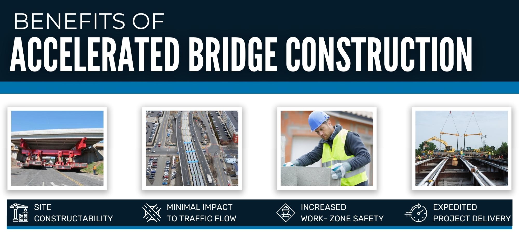 Utilizing Accelerated Bridge Construction (ABC) and precast, prestressed concrete elements and systems to repair or replace bridges and decking can create many efficiencies for state departments of transportation and other transportation agencies. Thereby enabling them to stretch their funding while effectively, efficiently, responsibly, and safely repairing aging infrastructure. Precast concrete is an excellent choice for accelerated bridge construction due to its speed, versatility, resiliency, and high quality. Precast is manufactured offsite in a PCI-Certified production plant under controlled environmental conditions. It can be quickly and efficiently erected on site and requires less maintenance over the bridge's lifetime.
